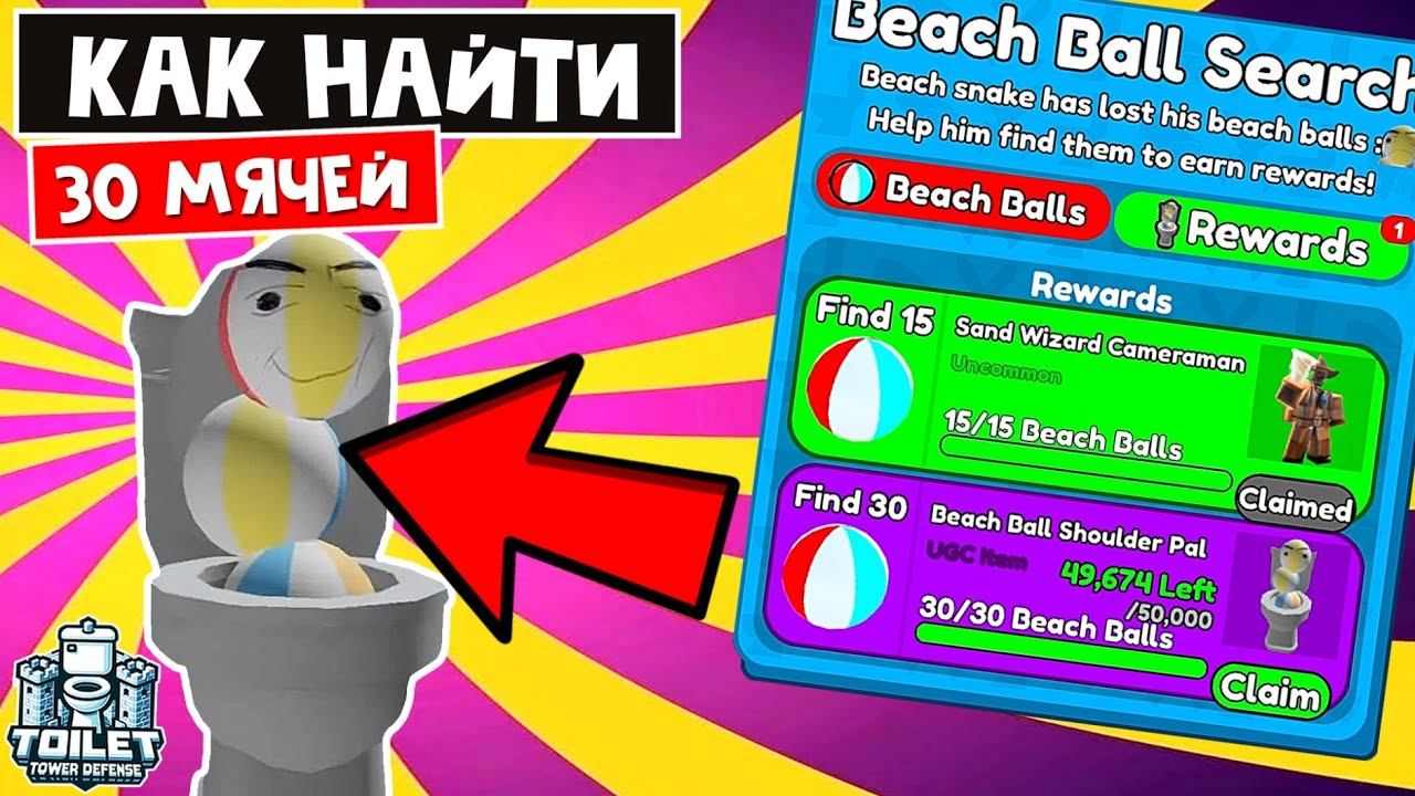 Где найти ВСЕ 30 МЯЧЕЙ в ТТД роблокс | Toilet Tower Defense roblox | БЕСПЛАТНЫЙ UGS Beach Ball Pal
