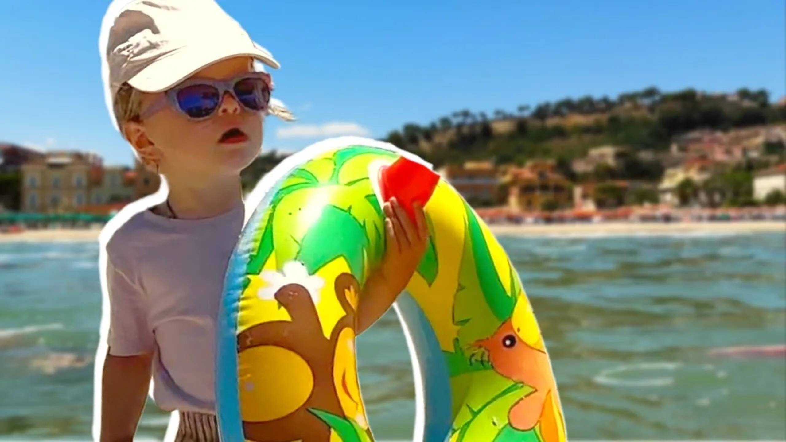 Каждый момент этого дня был полон радости и открытий для Анны и ее семьи. На пляже мама с Анной идут по мокрому песку, а Анна показывает ручками, как капает дождик. Мама рассказывает о волнах, и Анна с интересом идет по деревянной дорожке к морю, потом бежит на встречу папе, забирая у него пляжные полотенца, которые, правда, быстро падают на землю. Она крутит базу от пляжного зонтика, словно руль, а потом, одев купальник, направляется к морю. Мама и Анна играют в воде, подбрасывая друг друга, повторяя за мамой слова "море", "волна" и "Италия". Время пролетает незаметно, когда они играют в мяч с Николой. Никола ныряет и пытается стать на голову в воде, вызывая смех. Мама предлагает Анне выйти из моря и перекусить, но Анна не хочет одевать обувь. Мама превращает кроксы в маленьких помощников, которые будто просят Анну одеть их, спасая её от горячего песка. После пляжа Анна с мамой уходит, неся свой надувной круг, а затем наслаждается обедом с итальянской пастой. Позже, папа с Анной и Николой направляются в парк аттракционов, где катаются на машинках и паровозике. Анна с Николой гуляют по городу, Анна снова ест итальянскую пасту, затем находит собачку и нежно гладит её. Позже Анна сидит рядом с котиком, пытаясь его погладить, и вместе с Николой они сидят на полу, общаясь и смеясь. День завершается тем, что Анна танцует в ресторане под музыку, оставляя в памяти этот день как один из самых ярких и радостных моментов её лета в Италии. Таймкоды: 0:00 – Вступление: короткая нарезка из эпизодов, где Анна идет к морю, у Ани падают полотенца, Анна плавает в море с мамой, Никола ныряет в море, Анины кроксы топают к ней, Анна с папой и Никола катаются на машинках, Аня гладит собачку, Анна танцует, 0:25 – Мама с Анной пришли на море и идут по мокрому песку 0:36 – Анна показывает ручками, как капает дождик 0:50 – Мама рассказывает Ане, что на море сегодня волны 0:58 – Анна идет по деревянной дорожке и морю 1:10 – Анна ходит по песку вдоль моря 1:22 – Анна подходит ближе к воде и мочит ножки в море 1:42 – Анна бежит на встречу папе и забирает у него пляжные полотенца 1:54 – Полотенца выпадают на землю, и Анна пытается их поднять и у нее падает с головы кепка 2:13 – Анна крутит базу от пляжного зонтика как руль 2:33 – Анна уже одела купальник и идет к морю 3:01 – Мама с Анной играют в воде – мама подбрасывает Аню над водой, Анна повторяет за мамой – море, волна, Италия 3:34 – Анна играет в море с мамой и Николой в мяч 4:00 - Мама подбрасывает Аню над водой 4:08 – Мама просит Анну бить ножками по воде – Анна пытается 4:25 – Никола ныряет в море и пытается стать на голову 4:46 – Мама с Анной пытаются одеть Анину панаму на мячик 5:22 - Анна играет в море с мамой и Николой в мяч 5:45 – Мама предлагает Анне уже выходить из моря и перекусить 5:55 – Анна не хочет одевать обувь, и тогда мама делает вид как будто Анины кроксы идут к Анне и просят её одеть их, потому что песок очень горячий 6:20 – Мама и Анна уходят с пляжа, Анна сама несет свой надувной круг 6:29 – Анна кушает итальянскую пасту на обед 6:39 – Папа с Аней и Николой идут в парк аттракционов 7:11 - Папа с Аней и Николой катаются на машинках 7:36 - Папа с Аней и Николой катаются на паровозике 7:55 - Аней с Николой гуляют по городу 8:10 – Анна ест итальянскую пасту 8:26 – Анна идет к собачке, садится рядом с ней и гладит её 8:46 – Анна сидит рядом с котиком и пытается его погладить 8:56 – Анна и 