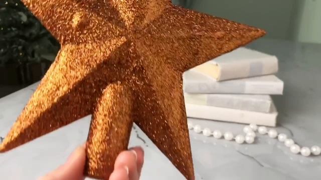 Елочная верхушка ЗВЕЗДА ДЕЛЮКС, пластик, глиттер, цвет: янтарный, 19 см, 029592