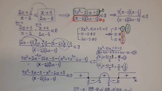 Решение неравенства с обнулением правой его части. + подробный разбор вычисления знака интервалов.