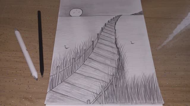 Мост. Старая лестница. Пейзаж. Падающая лестница. Рисунок #12