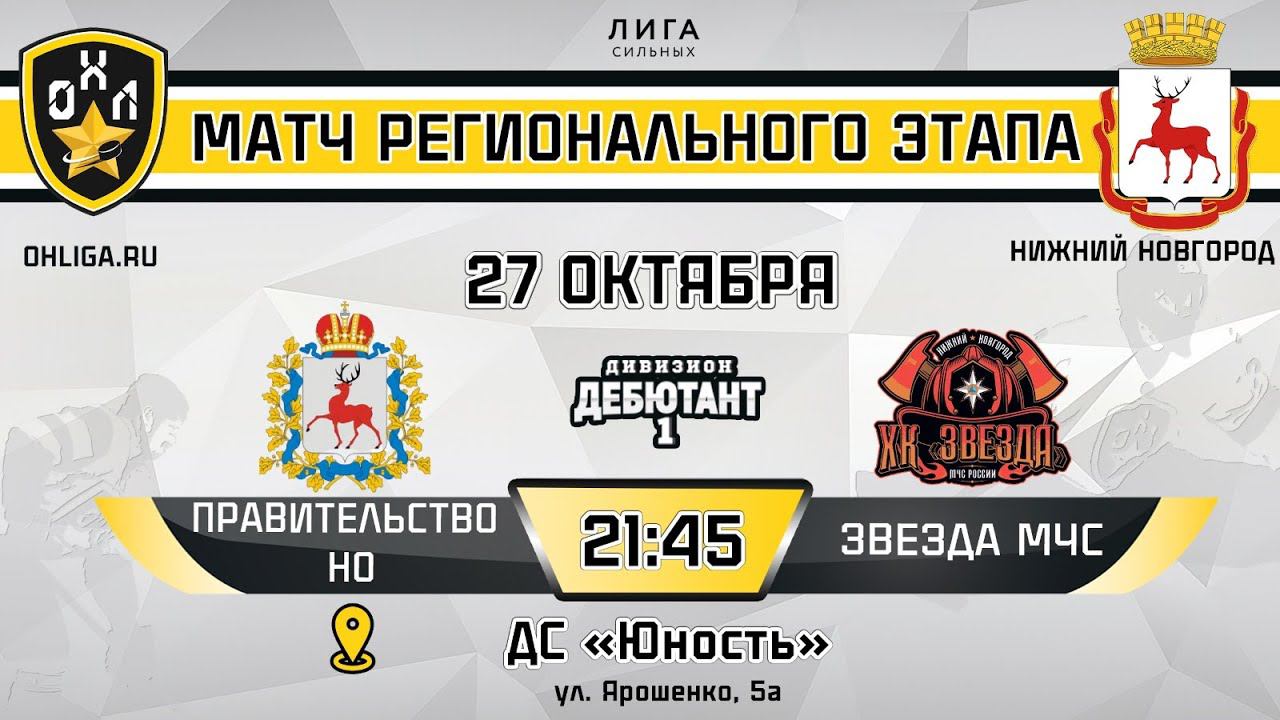 LIVE / ПРАВИТЕЛЬСТВО НО - ЗВЕЗДА МЧС / 27.10.23 / ОХЛ НИЖНИЙ НОВГОРОД / ДИВИЗИОН ДЕБЮТАНТ-1