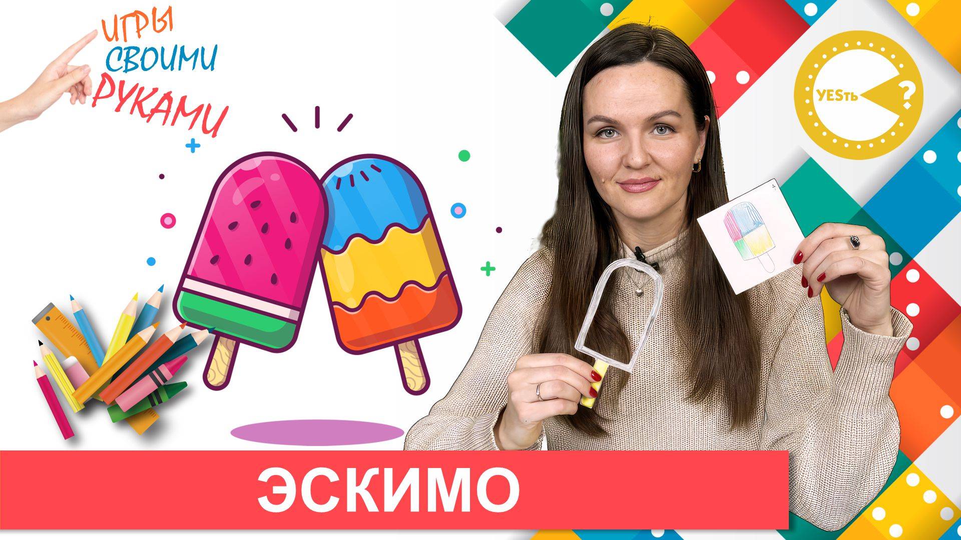 Простая и полезная игра с карточками. Для ее создания понадобится лист бумаги, лист плотного картона, бумага для записей, цветные карандаши и ножницы. Разделяем лист бумаги на четыре равные части, затем раскрашиваем каждую из них в свой цвет, вырезаем из картона шаблон эскимо и с помощью этих вещей создаем карточки. Для этого накладываем эскимо на разноцветный фон в разных положениях и перерисовываем, получившееся изображение внутри эскимо, на карточку. Задача ребенка, передвигая эскимо по игровому фону, получить такое же цветовое сочетание внутри эскимо, какое изображено на карточке. Магазин: labigr.ru Телефон: +7 324 258 24 24 По вопросам сотрудничества: info@labigr.ru Соц.сети: FB: / asbelyakov Instagram: / asbelyakov VK: https://vk.com/asbelyakov VK Лаборатории: https://vk.com/labigrtech Telegram: https://t.me/estvoros