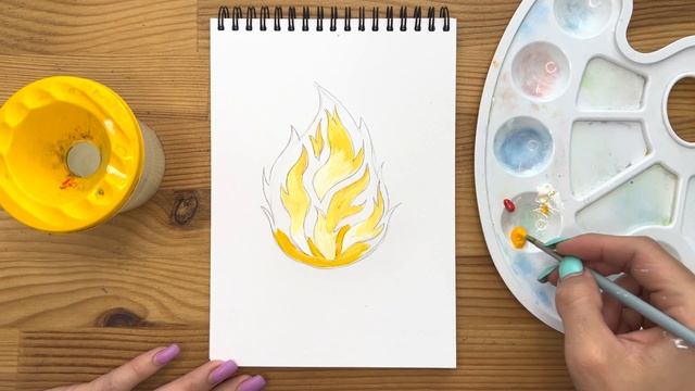 Как нарисовать огонь карандашом и гуашью для детей | Рисунок поэтапно для срисовки