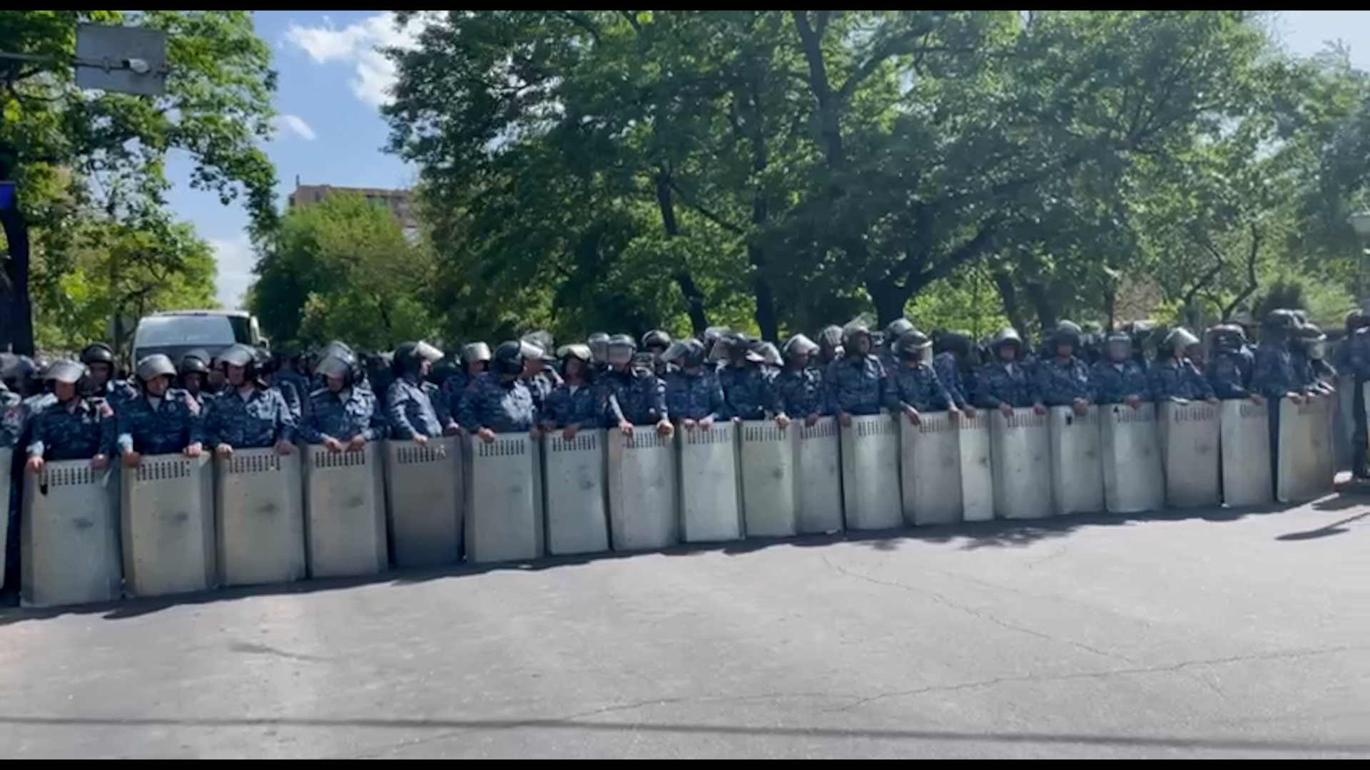Ազգային ժողովի մուտքերի մոտ ոստիկանների մի քանի շարքով պատ են կազմել` վահաններով ու մահակներով զինված։