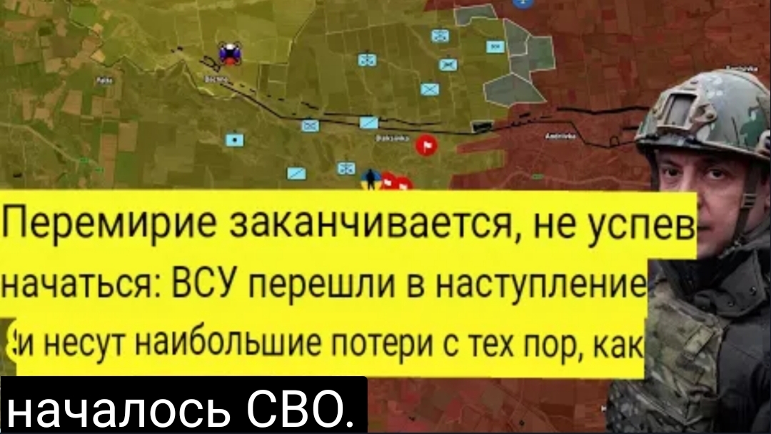Перемирие заканчивается, не успев начаться: ВСУ начинают наступление и несут большие потери.