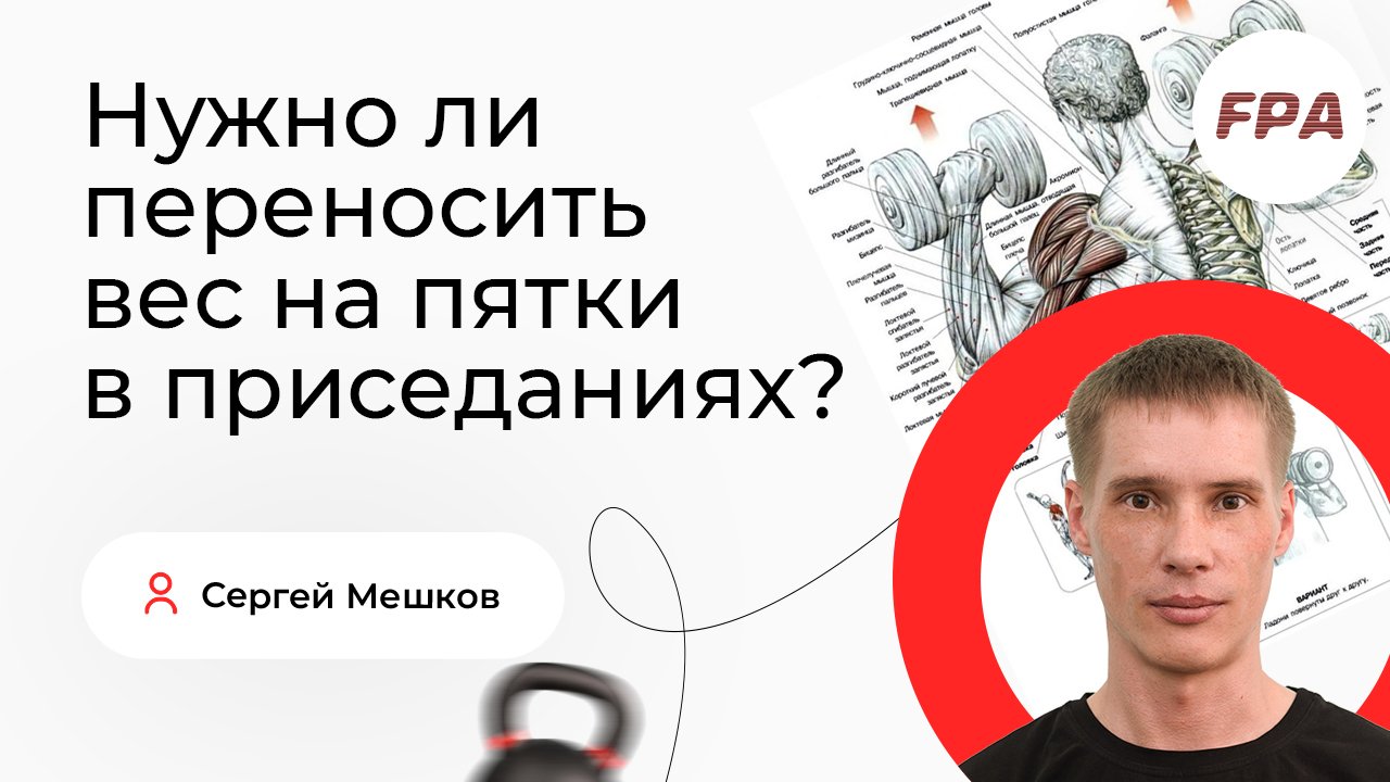 Нужно ли переносить вес на пятки в приседаниях? Прибавит ли это упражнению эффективности? Рассказывает преподаватель FPA Сергей Мешков. ⠀ Для детального понимания техники выполнения упражнений смотрите вебинар Сергея Мешкова полностью! Запись опубликована на YouTube-канале FPA: https://youtu.be/SkCa342H3u4 Хотите знать больше о технике выполнения упражнений? Приходите на семинар ? https://fitness-pro.ru/seminary/tekhnika-vypolneniya-uprazhneniy/ __________ Ассоциация Профессионалов Фитнеса (FPA) - лидер на российском рынке фитнес-образования. С 2000 года в FPA сертифицировано более 19 000 специалистов. Наши выпускники работают более чем в 1000 клубах Москвы, России и стран зарубежья ? http://fitness-pro.ru/ __________ Дистанционные программы обучения: – Персональный фитнес-тренер: https://bit.ly/39A06Xr – Фитнес-нутрициолог: https://bit.ly/37oC14n — Инструктор групповых программ: https://bit.ly/3AUq3ip – Детский фитнес: https://bit.ly/34OjT4B __________ Очные программы обучения: – Персональный фитнес-тренер: https://bit.ly/2ONTH2K – Инструктор групповых программ: https://bit.ly/2uFh3Re __________ Мы в соцсетях: ВКонтакте: https://vk.com/fpafpa Telegram-канал: https://t.me/trenerskayaFPA Telegram-чат для тренеров: https://t.me/trenerskayaFPAchat Яндекс.Дзен: https://zen.yandex.ru/fitness_pro_ru