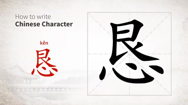 恳 (kěn) earnest; sincere; cordially; to request; entreat; implore
