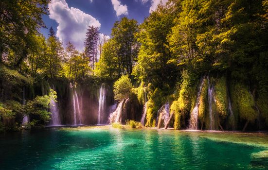 Водопад и красивая легкая музыка.