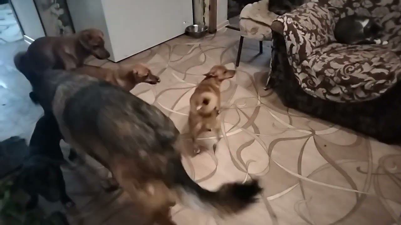 Щенки резвятся вместе в квартире