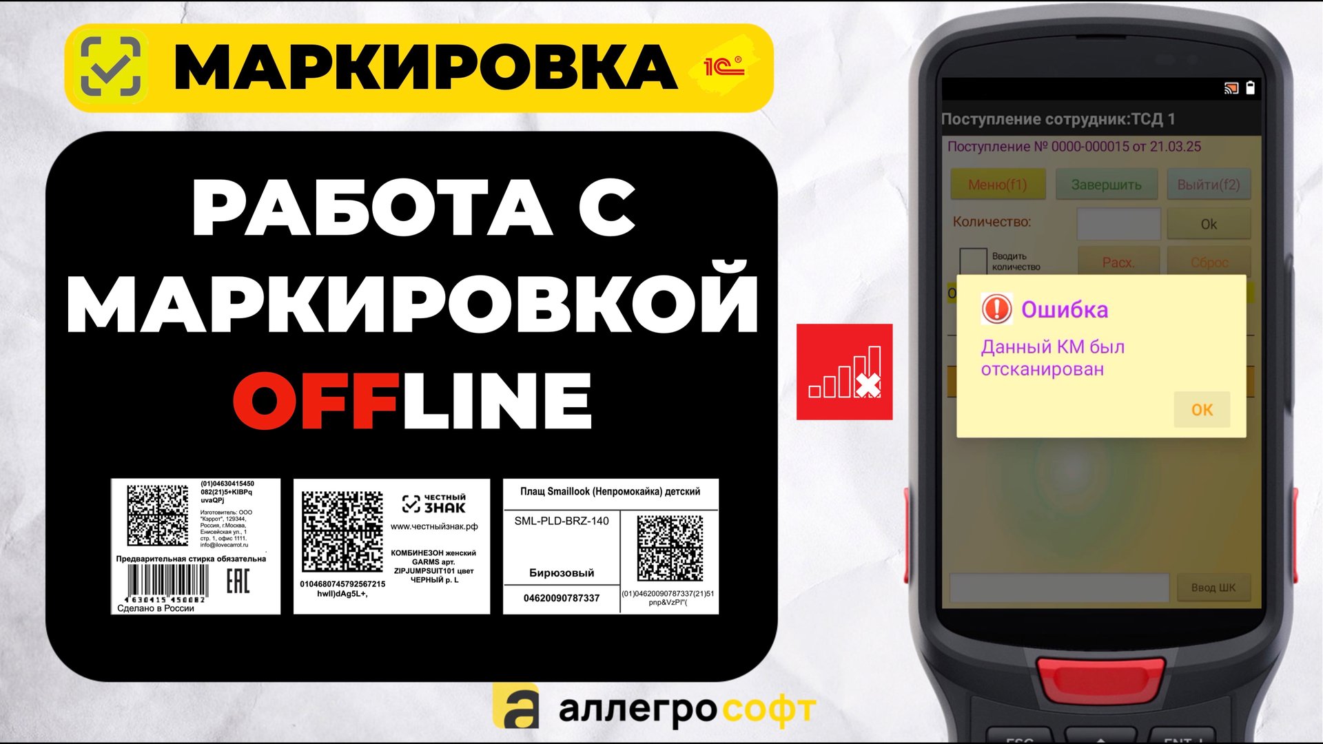 #1свнедрение #тсд #честныйзнак #автоматизация1с #allegrosoft Как принять и отгрузить маркированную продукцию (Честный Знак) при помощи ТСД если на складе или в магазине отсутствует стабильное соединение. Программа AllegroCount позволяет работать с кодами DataMatrix любых товарных групп. Скачать и протестировать: https://allegrosoft.ru/n/programma-dlya-tsd-allegrocount AllegroSoft - https://allegrosoft.ru/ канал об автоматизации бизнеса Telegram канал - https://t.me/allegrosoft ★Автоматизация магазина и склада, работа с маркировкой. ★Загрузка данных на ТСД из 1с. ★Ускорение комплектации и сбора заказов на 50%. ★Ускорение инвентаризации склада на 70%. ★Возможность автоматизации “ручных” процессов на складе/магазине. Заходите, смотрите и подписывайтесь на канал! Мы в интернете: ➧ Сайт - https://allegrosoft.ru/ ➧ Landing Page - https://sznak.ru/ ➧ Почта - info@allegrosoft.ru ➧ Телефон - +7 (499) 213-02-73 Наш канал: https://www.youtube.com/@allegrosoft_company