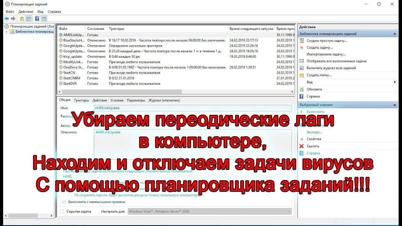 Убираем периодические лаги и зависания компьютера. Находим задачи вирусов. Планировщик заданий.
