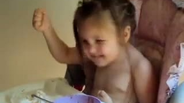 Девочка кушает под музыку