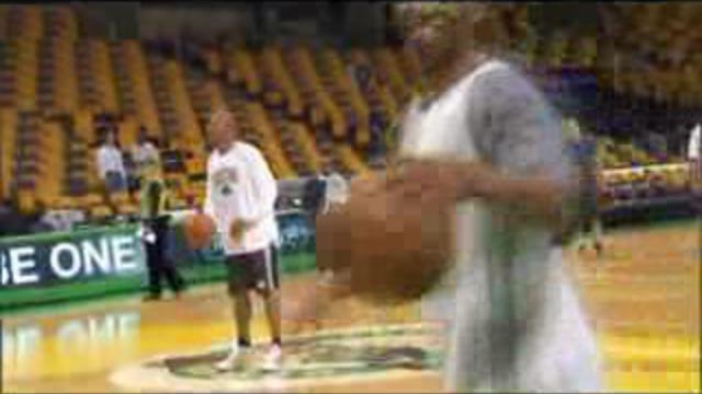 NBA!!! Ray Allen попадает в корзину спиной с середины площадки!