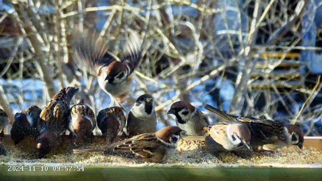 Воробьи в кормушке