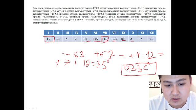 Атмосфера бөліміне есептер шығру (Орташа күндік,жылдық және амплитуданы есептеу).
