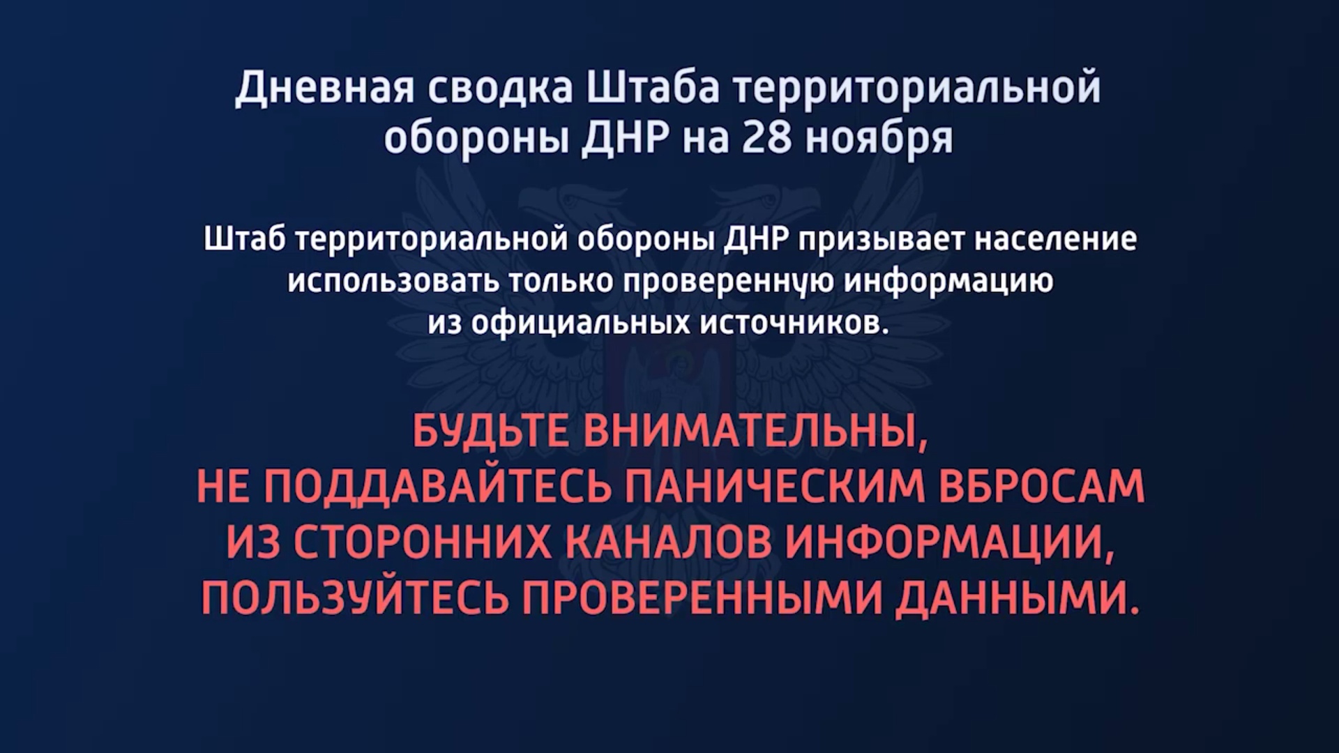 Дневная сводка Штаба территориальной обороны ДНР на 28.11.2022