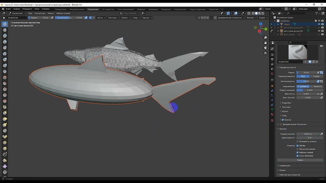 акула правильно скульпинг