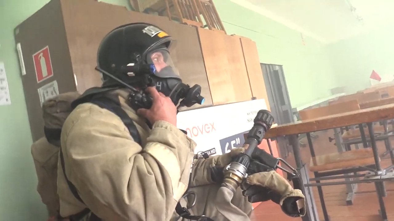 В школе №5 п. Костино в городе Кирове была объявлена пожарная тревога. Персоналу и сотрудникам МЧС предстояло ликвидировать импровизированный очаг возгорания и эвакуировать детей из здания. В здании появляется дым и неприятный запах. Но огня нет. Это всего лишь дым-машина. Учения начались. Здесь должны правильно показать себя педагоги, ведь именно от их слаженных действий зависят жизни детей. Согласно вводной, возгорание произошло в помещении мастерской на первом этаже школы. Обнаруживший огонь работник срочно сообщает о сложившейся чрезвычайной ситуации. Под звуки автоматической системы оповещения людей о пожаре происходит эвакуация всех учащихся в безопасную зону, к соседнему зданию дома культуры. Учителя выводят школьников на улицу всего за несколько минут. К зданию прибывают пожарные расчёты. Огнеборцы включаются в дыхательные аппараты на сжатом воздухе и проводят разведку пожара, ликвидирую очаг возгорания в мастерской и, используя маску спасаемого, эвакуируют надышавшегося дымом школьника в коридоре первого этажа. Построившиеся на площадке ребята наблюдают за действиями сотрудников МЧС и получают противопожарный инструктаж о действиях при возникновении нештатных ситуаций. Самые смелые из ребят смогли на практике показать правила использования первичными средствами пожаротушения – огнетушителем. Итоги совместной тренировки подвёл старший инспектор отдела надзорной деятельности и профилактической работы г. Кирова Александр Сюзев: - все силы и средства сработали на отлично, персонал школы действовал оперативно и грамотно, дети эвакуированы в кратчайшие сроки. По словам директора школы №5 Евгения Владимирова, персонал школы показал грамотные действия при проведении тренировки, все системы пожарной автоматики выполнили свои функции в полном объеме.