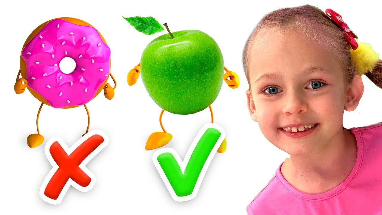 Мы стали персонажами игры! Чтобы выиграть, нам нужно есть фрукты и избегать сладости! Колыбельная для акуленка.