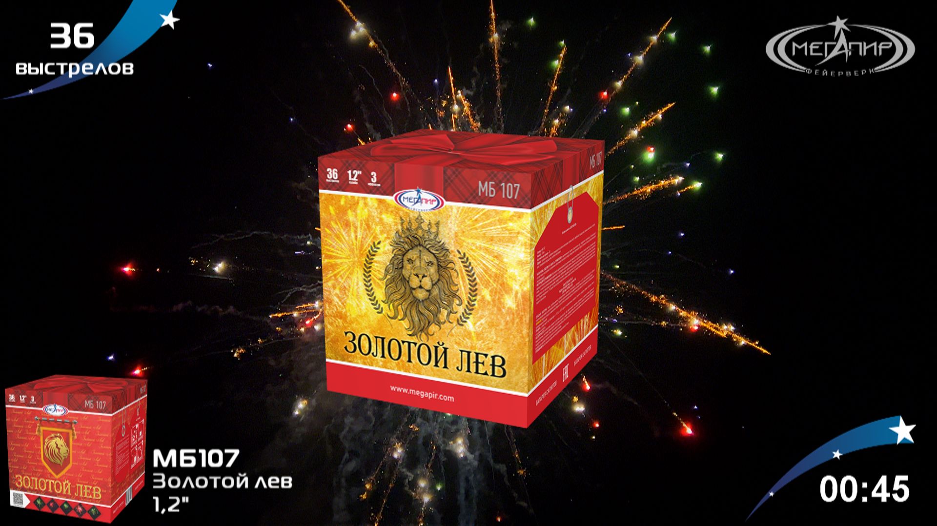 Батарея салютов 36 залпов Золотой лев МБ107