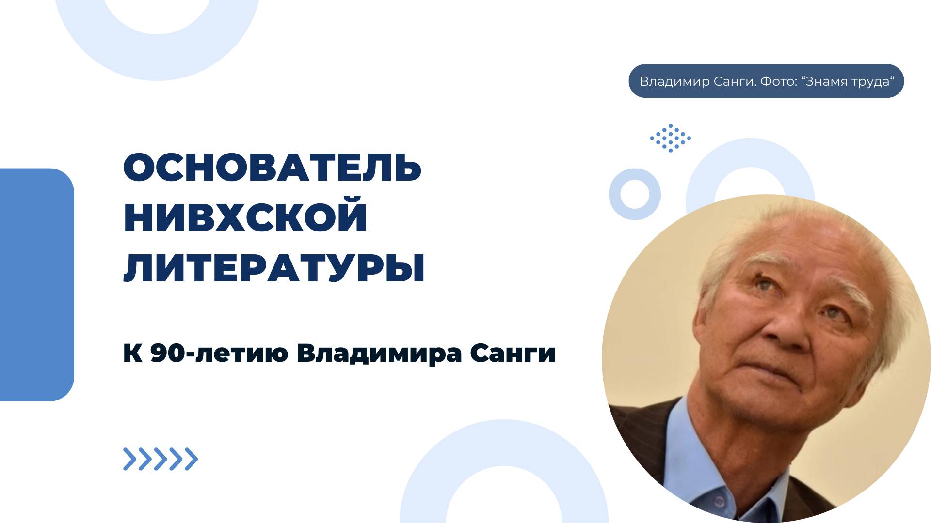 18 марта исполняется 90 лет со дня рождения Владимира Санги, писателя и публициста. Россия – крупнейшее государство с большим разнообразием этнокультур. На Дальнем Востоке живут нивхи - коренное население Приамурья и острова Сахалин. Считается, что до 1931 года у них не было письменности. Владимир Михайлович Санги стал основателем нивхской литературы, участвовал в разработке алфавита и правил орфографии, написал учебники и книги для чтения в школах. В советское время были популярны сборники нивхских сказок, легенд, очерков и рассказов Владимира Санги. Юбилей писателя – отличный повод познакомиться с творчеством автора или перечитать некогда понравившиеся произведения.