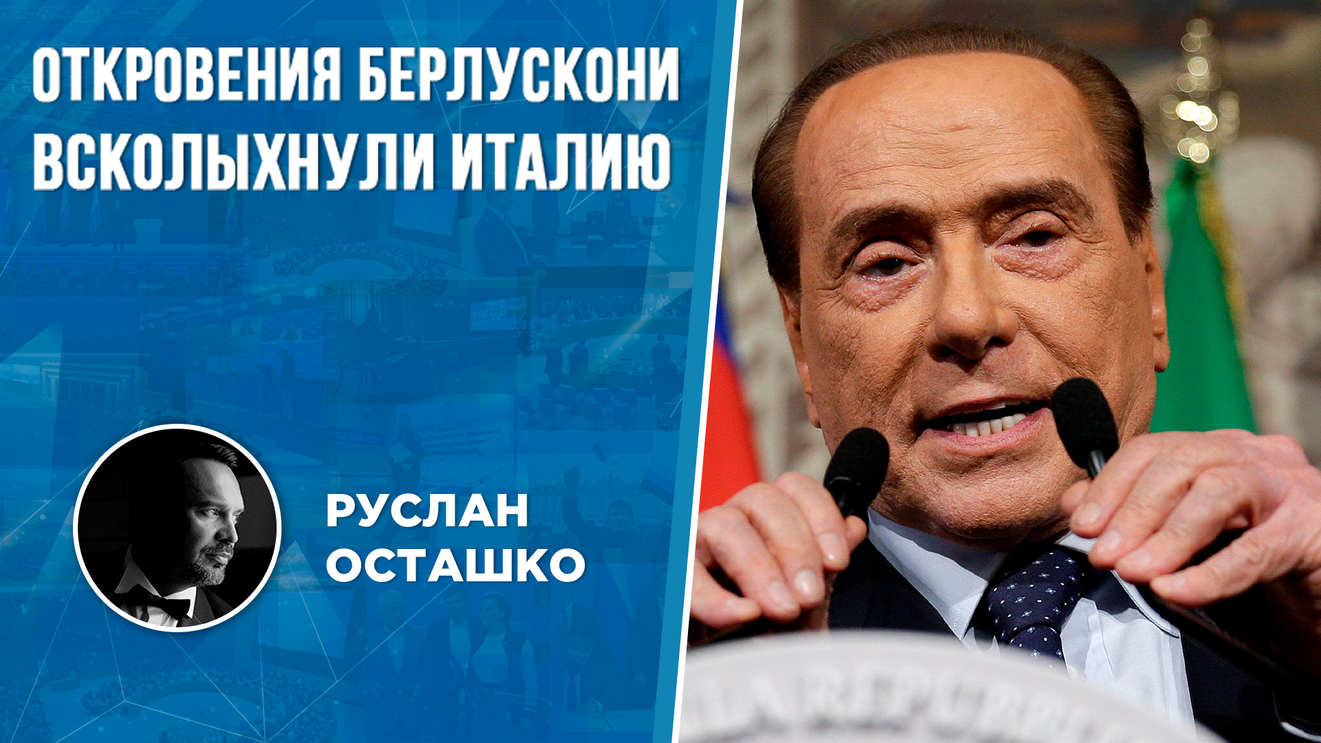 Помощь редакции и НАШИМ на Украине https://politrussia.com/donate/ Спасибо! Экс-премьер Италии Сильвио Берлускони недавно потряс итальянское общество откровениями о Зеленском, Путине и России. Агентство «Le Press» распространило аудиозапись, где лидер партии «Вперед, Италия» оправдывает российского президента, критикует Зеленского и обвиняет его в провокации конфликта. Телеграм-канал Осташко! Важное: https://t.me/ostashkonews