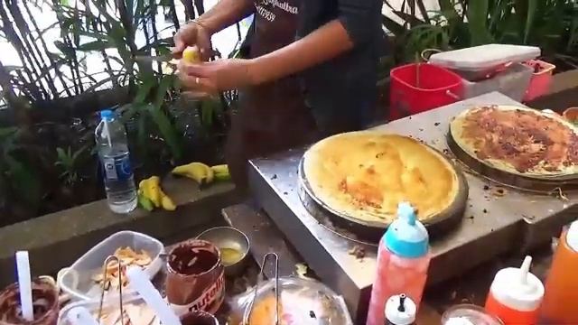 Блины из банановой муки с бананами и шоколадом Уличная еда Таиланд Бангкок
