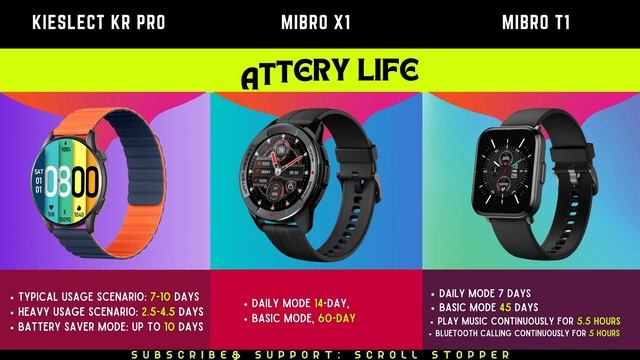 Check BD Price: Mibro X1: http://bit.ly/3W2nmFG In this video, we're going to compare the Kieslect KR Pro vs Mibro X1 vs Mibro T1. We'll cover the features of each device, as well as how they compare in terms of performance. This is a meaningful comparison, as the Kieslect KR Pro, Mibro X1, and Mibro T1 are the top three selling smartwatches on the market right now. So which one is the best? In this video, we'll tell you all about the differences between the Kieslect KR Pro, Mibro X1, and Mibro T1 and which one is the best for you! Like our FB page: (For Any Giveaways) - https://www.facebook.com/scrollstopperhub Join our FB Discussion Group: (You can Post any queries) - https://www.facebook.com/groups/1397803787421287 ????????: Display - 0:32 Battery Capacity- 1:22 Strap Size: 1:17 Waterproof Rate- 2:02 Watch Face - 2:40 Why Should you buy (KEY FEATURE) - 3:01 Price Range - 3:09 ?????? ???? ? ???? ?? ??? ????? ??-???? ?????????? ??????????: ?????? ??? ???? ?? ??????? ??? ? ???? ?? ????? ????? ? ???? https://youtu.be/4ExktsxZZCI ????? ???????? ????? ???? ?? ????? ???????? ???? ???? ?? ????? ? https://youtu.be/GiWAq-HPLbY ?????? ????? ???? ?? ?????? ??? ?? ????? ??? https://youtu.be/DtZJ2L4v0X4 ?????? ??????? ??? ???? ?? ??????? ??? ? ?? ??????? ??? ? ??? https://www.youtube.com/watch?v=UP6Y9bDCPOs&t=12s ?????? ????? ?? ?? ?????? ??? ?? ???????? ??? https://www.youtube.com/watch?v=0kQRhfiUY-0&t=57s ?????? ????? ???? ?? ?????? ?? ????? ?? ?????? ??? ???? https://www.youtube.com/watch?v=UXRmcKkkBUU ?????? ???? ?? ??? (?????) ?? ??? (????) https://www.youtube.com/watch?v=TYPm7wTya4w&t=18s ? ???? ???????????? ????? ???? https://www.youtube.com/watch?v=QETd0FJSCUU ?? ???? ???????????? ????? ???? https://www.youtube.com/watch?v=_irw-h__rcg 【Welcome to the "Scroll Stopper" channel!】 (っ◔◡◔)っ ♥ Subscribe and let's start exploring. ♥ #Kieslect_KR_Pro_vs_Mibro_X1_vs_Mibro_T1 #Kieslect_KR_Pro_vs_Mibro_T1 #smartwatch_comparison