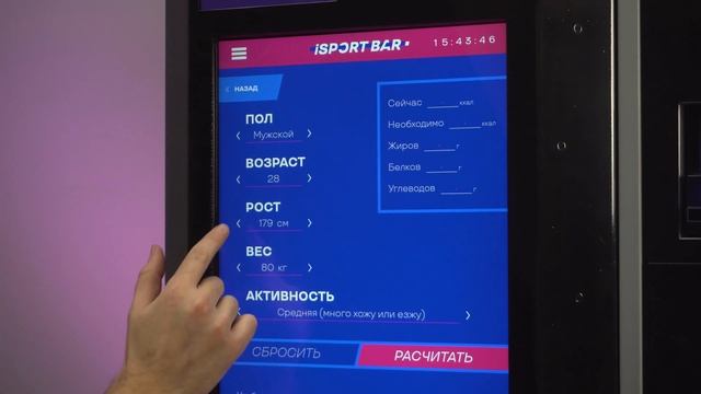 Калькулятор калорий в вендинговом автомате iSportBar