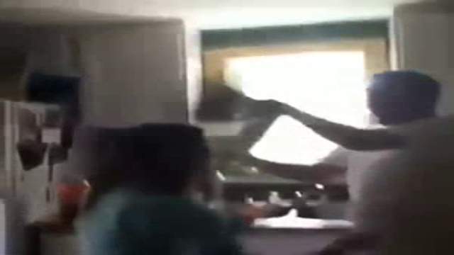 Хотела напугать папу - получила по морде доской. папа - молодец, не растерялся ))).