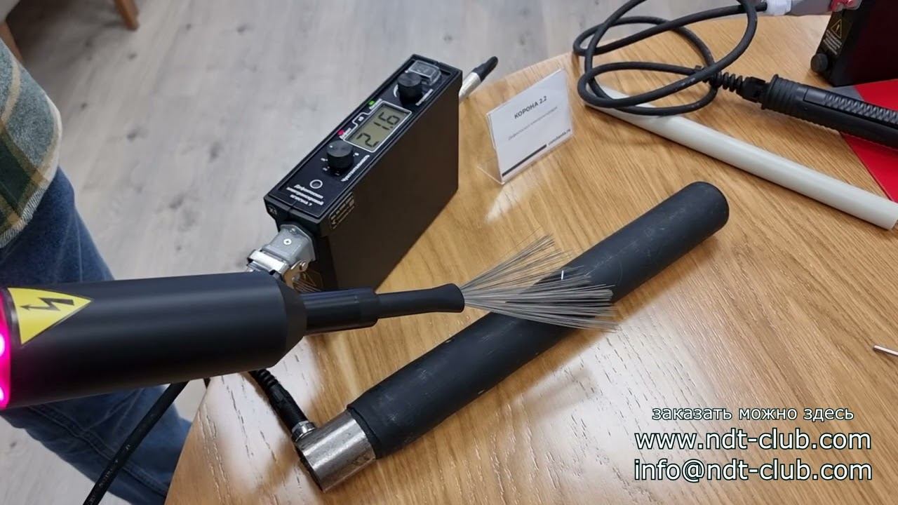 Электроискровой дефектоскоп Корона 2 демонстрация работы на изделии с диэлектрическим покрытием -подробнее о приборе на нашем сейте https://www.ndt-club.com/product-159-korona-2-1-elektroiskrovoi-defektoskop.htm https://www.ndt-club.com/product-495-korona-2-2-elektroiskrovoi-defektoskop.htm