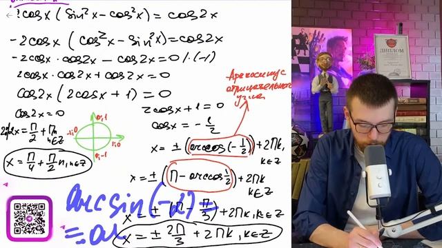 a) Решите уравнение 2 sin x × sin 2x = 2 cos x + cos 2x. б) Найдите все корни этого - №16189