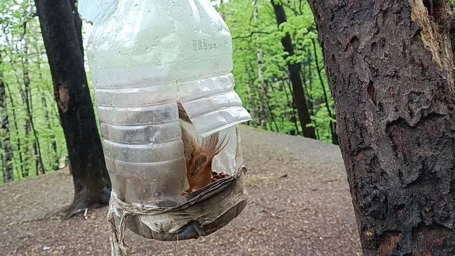 Белка залезла в кормушку