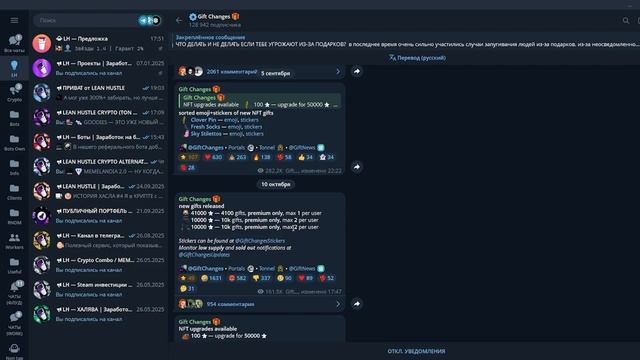 ✅ Полезные сервисы: ТГ-канал - https://t.me/lh_crypto1 Купить TG-звезды - https://t.me/lh_crypto1/4732 Продать TG-звезды - https://t.me/lh_crypto1/7430 Купить TON - https://t.me/lh_crypto1/8244 Реферальный бот - https://t.me/lhrefs Наши чаты - https://t.me/leanchatik В конце прошлой недели я обещал делать больше контента для масс, именно этим я и занимаюсь снова — итак, перед вами ролик-туториал со всеми лайфхаками, которые помогут вам не пропустить очередной дроп NFT-подарков и купить их непосредственно после их выхода. Рекомендую чекнуть и новичкам, и олдам, ведь материал полезный. Приятного просмотра! 00:00 Вступление 01:26 В какие даты выходят NFT-подарки? 04:25 Когда конкретно выходят NFT-подарки? 05:09 Как ТОЧНО услышать, что вышли новые NFT-подарки? 06:19 Как купить конкретно, когда NFT-подарки уже вышли? 08:42 Можно ли успеть купить нон-премиум NFT-подарки? Автор канала — https://t.me/lhmanag Зарабатывай на схемах - https://clck.ru/3EYXhF #leanhustle #nft #telegram
