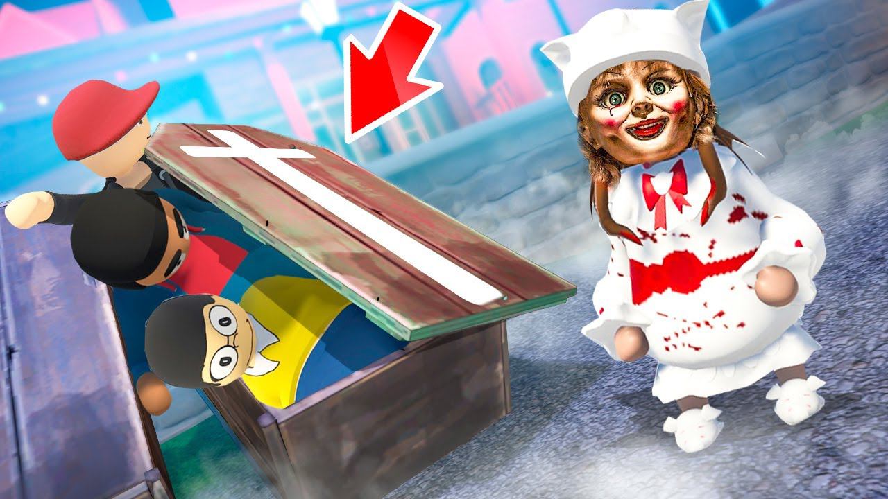 ЖУТКАЯ КУКЛА ИЩЕТ НАС! УКРЫЛИСЬ ВОЗЛЕ СТРАШНОГО ДОМА! УГАРНЫЕ ПЛАСТИЛИНОВЫЕ ПРЯТКИ В HUMAN FALL FLAT