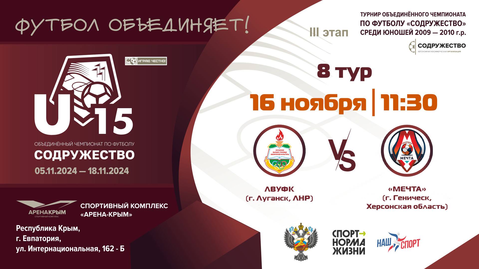 8 ТУР | U-15 | ЛВУФК (г. Луганск, ЛНР) vs ФК «Мечта» (г. Геническ, Херсонская область)