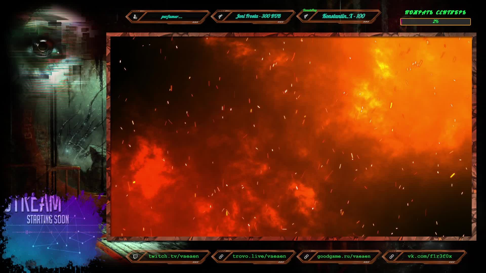 Если хотите поддержать меня как стримера - нажмите по данной ссылке https://www.donationalerts.com/r/f1r3f0x Donate for USD, EU all world - https://new.donatepay.ru/@vaeaen Во время стрима ваше сообщение появится на экране, и будет сопровождаться голосовым диктором. Поддержка на Boosty https://boosty.to/vaeaen Поддержка без комиссии: Сбер: 2202 2010 0629 1039 Тинькофф: 2200 7008 4677 0625 Основные каналы: Twitch: https://www.twitch.tv/vaeaen Trovo: https://trovo.live/Vaeaen GoodGame: https://goodgame.ru/channel/Vaeaen/ VKplay: https://vkplay.live/vaeaen Wasd: https://wasd.tv/vaeaen YouTube: https://www.youtube.com/channel/UCsl3CyRcImUYtWiCgEdvmjQ