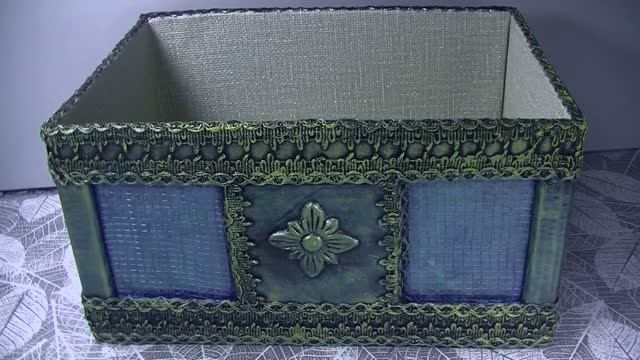 Декор картонной коробки сеткой и прошвой .