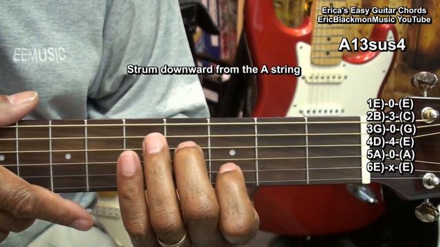 A13sus4 Erica's Easy Exotic Guitar Chords #24 How To Play Chord TABS @EricBlackmonGuitar