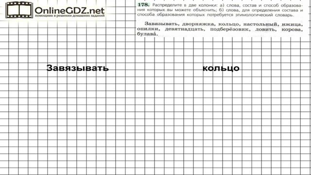 Другие решения смотри тут: https://urokitv.net/43-russkiy-yazyk-6-klass-ladyzhenskaya-baranov-1-i-2-chast Urokitv.net это школьные учебники и решебники с 1-го по 11-й класс школы. Ждем ваших предложений и пожеланий. Если вам нравится, то что мы делаем расскажите про нас своим друзьям и одноклассникам. Для решения 178 упражнения вам понадобится распределить слов в две колонки: слова, состав и способ образования которых вы можете объяснить, и слова, для определения состава и способа образования которых потребуется этимологический словарь. Вашим помощником будет наше видео с решением. Задание № 178 — Русский язык 6 класс (Ладыженская, Баранов, Тростенцова)