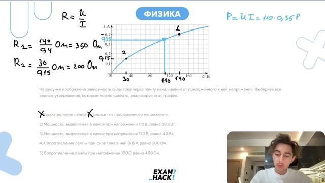 На рисунке изображена зависимость силы тока через лампу накаливания от приложенного к ней - №24826