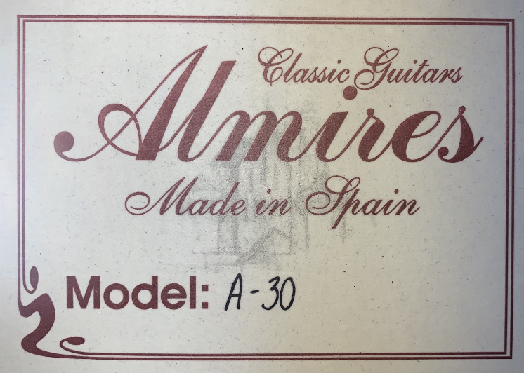Almires A-30 - Испанская классическая гитара Верхняя дека: орегон Нижняя дека и обечайка: красное дерево Гриф: красное дерево Накладка: палисандр Окантовка: белая Мост: сикамор Никелированные колки Длина мензуры: 650 мм