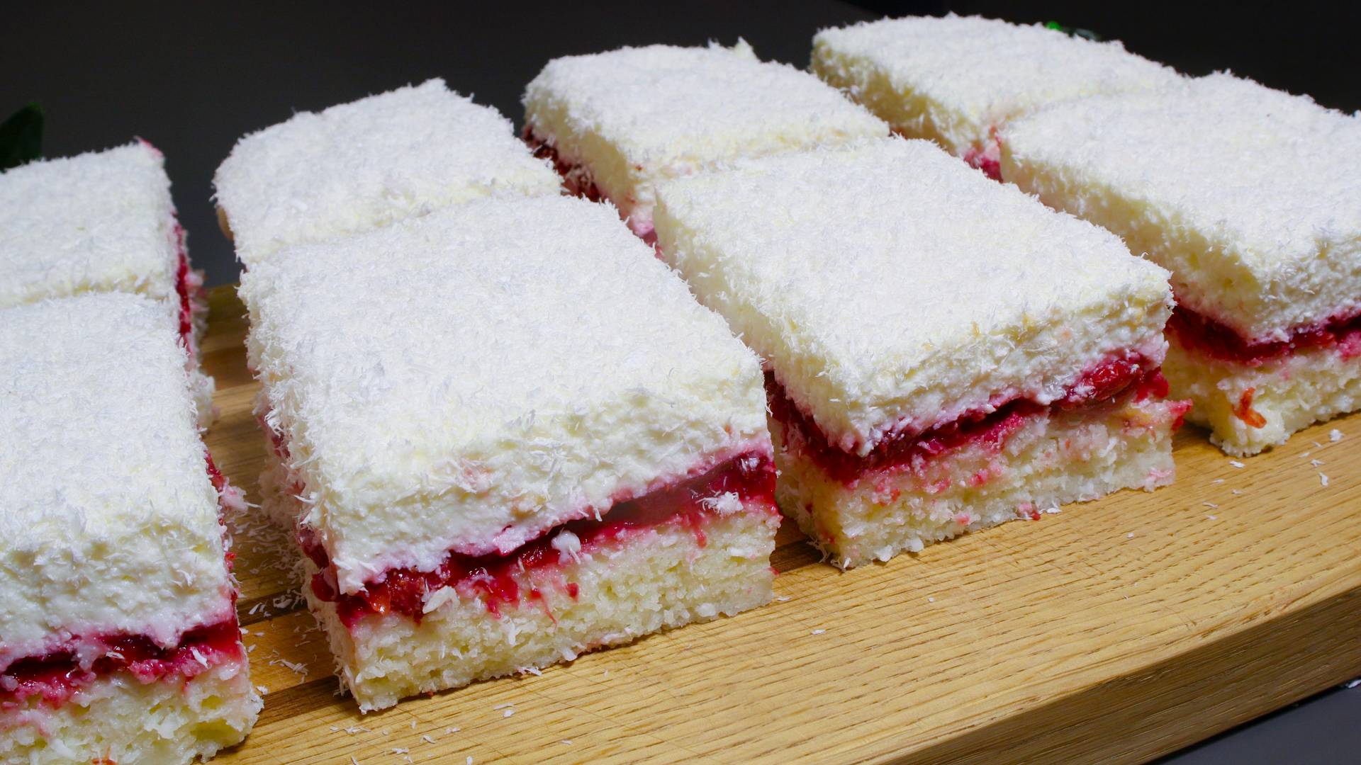 Любимый торт моих детей! Приготовьте это чудо! Из самых простых продуктов. Торт пирожное невеста! Без яиц! Быстро и просто! Добрый день! Сегодня мы приготовим невероятно вкусный пирог. Обязательно готовьте. Ингредиенты: - манная крупа 180 гр. + кокосовая стружка 80 гр. - сахар 150 г. - 2/3 ч.л. пищевой соды + щепотка соли. - кефир 500 г. - форма для запекания 20 на 30 см. - в духовку на 25-30 минут при температуре 180°C. - 10 г желатина (1 столовая ложка) + 4 столовые ложки воды (60 г). - 150 г сахара + 40 г кукурузного крахмала. - молоко 500 мл. - помешивая, доведите до загустения на среднем огне. - 1 ч.л. ванильного сахара + 40 г кокосовой стружки. - накрываем пленкой и ставим в холодильник на 15-20 минут. - творог 500 гр. - пропитываем бисквит. 100-150 мл молока. - 400 гр. любые ягоды. - 4 столовые ложки сахара. - кукурузный крахмал 20 г + вода 30 г. - на среднем огне доводим до загустения. - оставляем на 20 минут при комнатной температуре. - постепенно добавляем к творогу наши сливки. - растопите желатин в микроволновке и добавьте немного сливок. - кокосовую стружку. - в холодильник на 2-4 часа. Наш торт готов! Если вам понравилось, ставьте лайк, подписывайтесь и пишите комментарий!