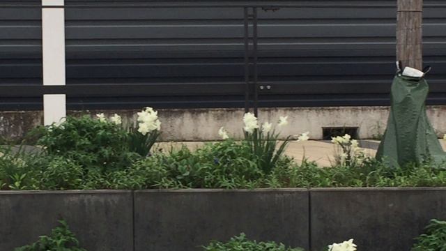 ГЕРМАНИЯ. РАУНХАЙМ, ПРИГОРОД ФРАНКФУРТА-НА-МАЙНЕ. БЕЛЫЕ ЦВЕТЫ ВДОЛЬ ЖЕЛЕЗНОЙ ДОРОГИ...