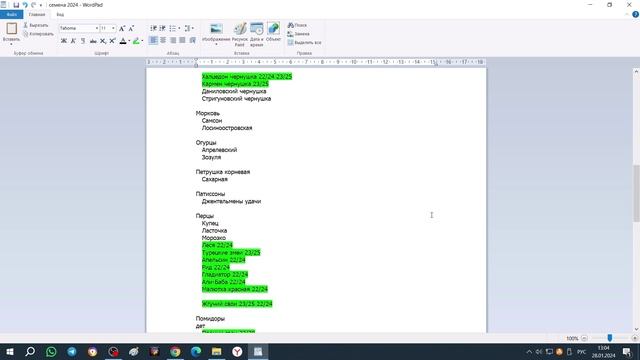 Список семян на 2024 год.