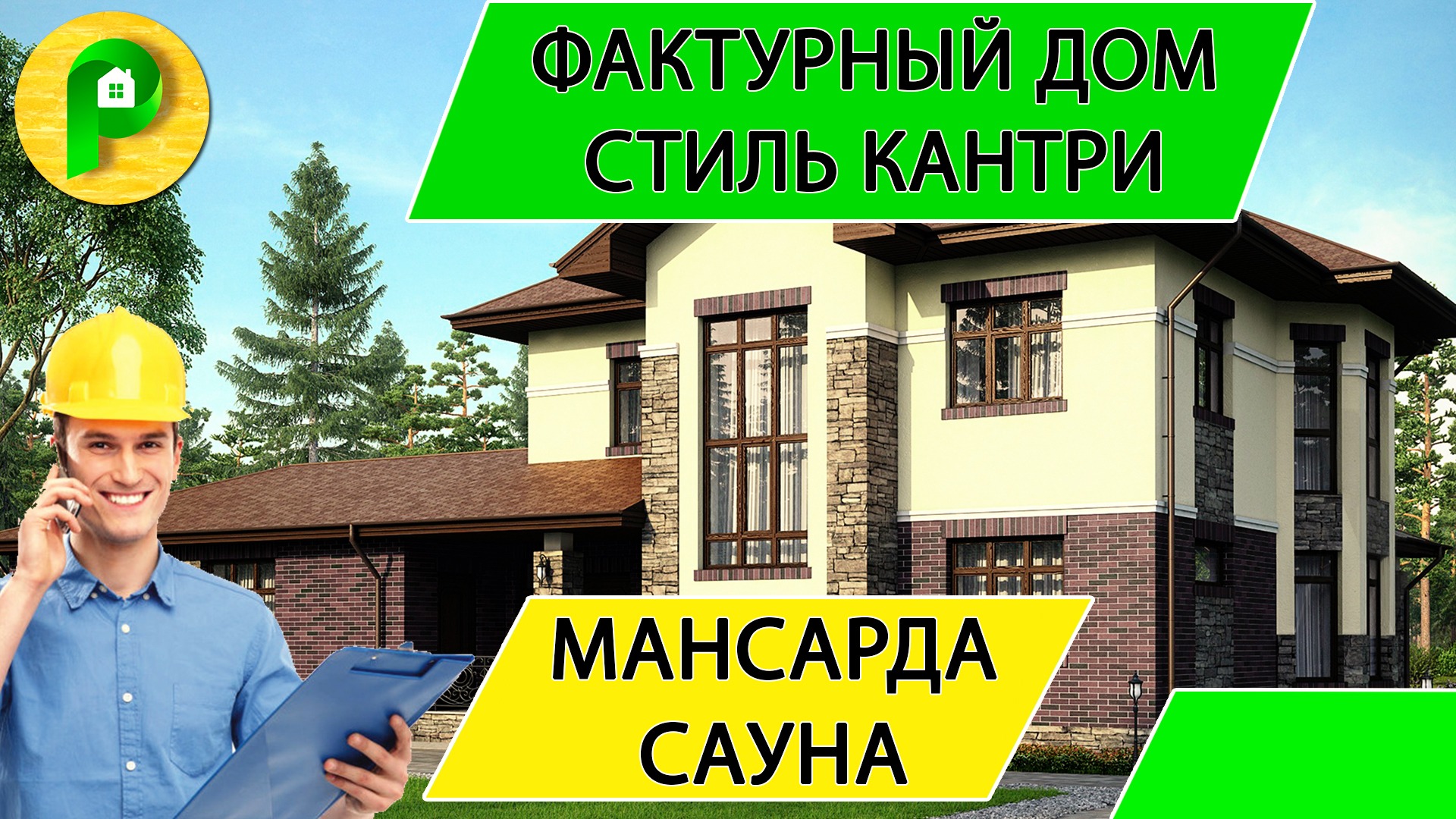 Проект дома в стиле кантри из газобетона с мансардой 12 на 12, 5 спален сауна Ремстройсервис М 194