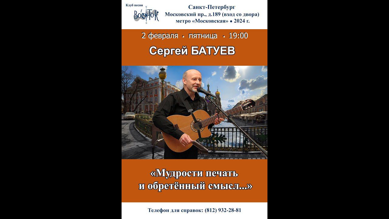 Сергей Батуев. «Мудрости печать и обретённый смысл...»Санкт-Петербург.Клуб песни «Восток».2.02.2024