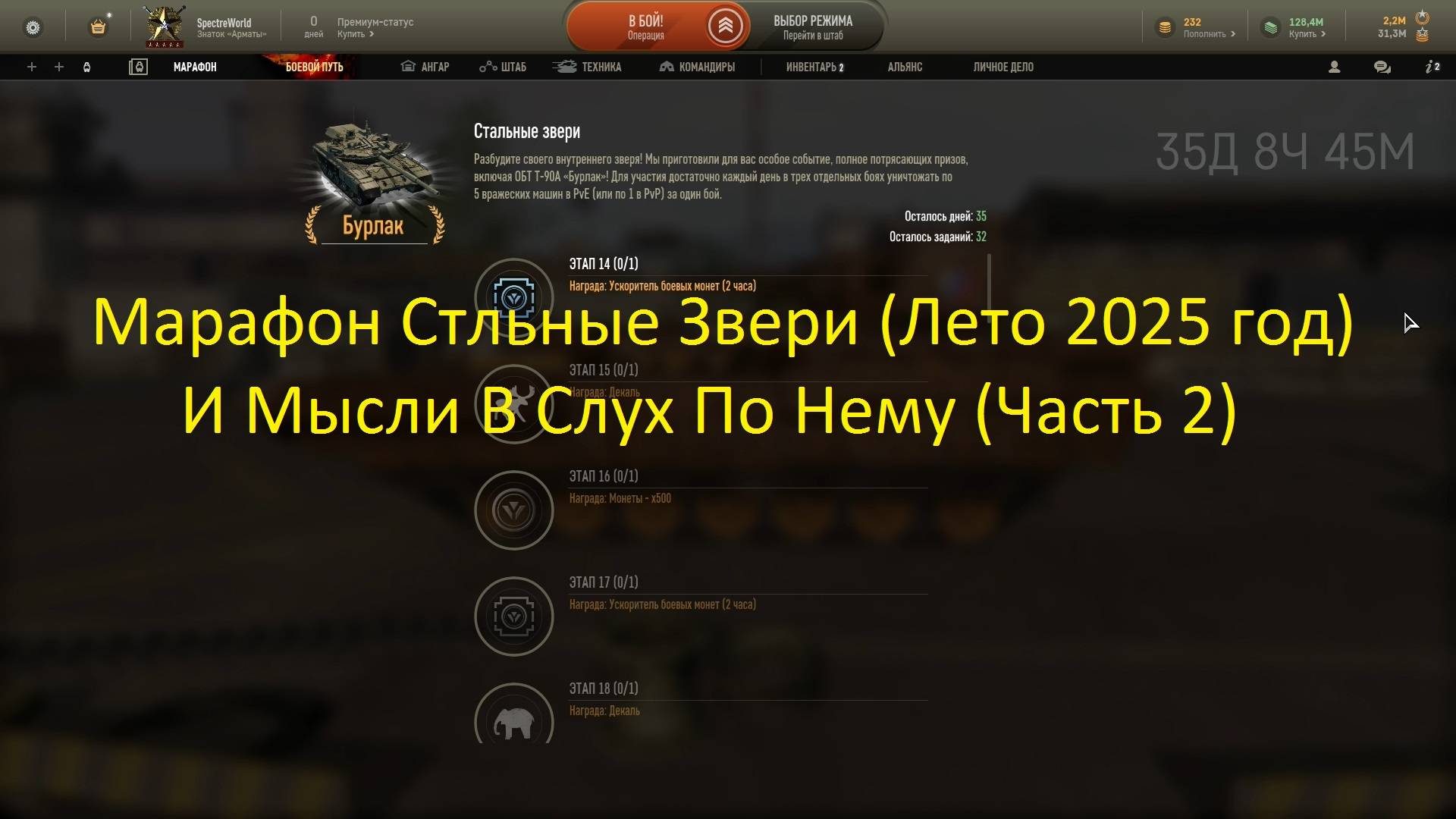 Всем привет. Мысли в слух по поводу марафона Стальные Звери (Лето 2025 года). Это вторая часть, в которой я решил высказаться. Всем приятного просмотра.