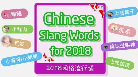 #ChineseVocabulary #LearnChinese #LearnMandarin Learn 13 Chinese Internet Slang Words of 2018 | Chinese Slang Words 1.锦鲤(jǐn lǐ) 2.杠精(gàng jīng) 3.巨婴 (jù yīng) 4.小哥哥/小姐姐 (xiǎo gē ge/xiǎo jiě jie) 5.小鲜肉 (xiǎo xiān ròu) 6.大猪蹄子(dà zhū tí zi) 7.隐形贫困人口(yǐn xíng pín kùn rén kǒu) 8.佛系(fó xì) 9.官宣(guān xuān) 10. 土味情话(tǔ wèi qíng huà) 11. C位(C wèi) 12. 确认过眼神(què rèn guo yǎn shén) 13. 家里有矿(jiā li yǒu kuàng) =================================== If you have any questions, please tell us in comment. Thanks! ●Visit our official website: https://www.learn-chinese.com/ ●Subscribe to our channel: https://goo.gl/H7TeQo ●Follow us on Facebook: https://fb.me/LearnChineseinChinatown/ =================================== Chinese language topics: #ChineseSlangWords #MandarinSlangs #ChineseVocabulary #ChineseWords #LearnChinese #LearnMandarin